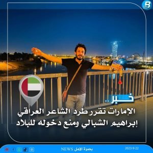 الإمارات تقرر طرد شاعرا عراقي رئيس التحرير 23 سبتمبر، 2023 ثقافة وفنالإمارات تقرر طرد الشاعر العراقي إبراهيم الشبالي ومنع دخوله للبلاد. بصرة الأمل News