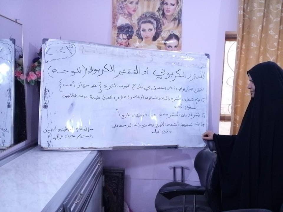 بشرى الموسوي مسؤول الشعبة النسوية في مديرية شباب ورياضة النجف تقول لقد قمنا بمساعدة النساء بفتح العديد من المهن وتدريبهن على مختلف الاعمال