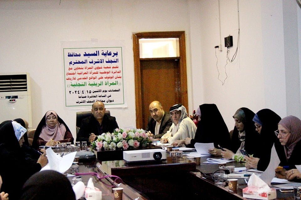 عقد قسم شؤون المرأة في ديوان محافظة النجف الأشرف إجتماعا لوضع خطة إستراتيجية لدعم المرأة الريفية وتعزيز مكانتها الإجتماعية بحضور معاون المحافظ للشؤون الإدارية الأستاذ هاتف الماضي ومستشار المحافظ لشؤون اللامركزية أياد الفتلاوي ومدير قسم شؤون المرأة في الديوان آلاء التميمي.