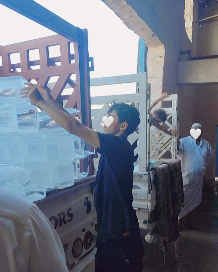 عملنا في تقديم المساعدات الإنسانية في المناسبات الدينية في توفير الاحتياجات من قوالب الثلج بجهودنا التطوعية في توزيع ستمائة قالب من الثلج وألف صندوق من الماء للمواكب الدينية