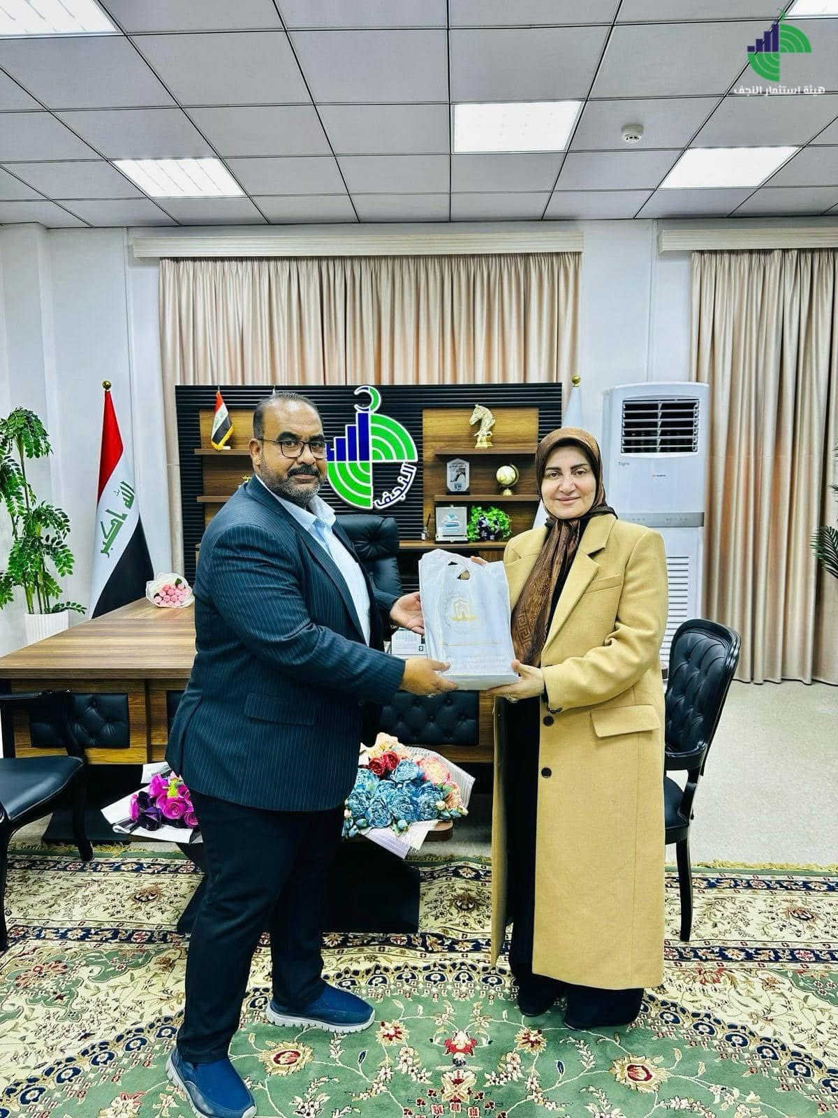 وفد من عتبة مسلم بن عقيل (ع) يزور هيئة استثمار النجف الأشرف ويلتقي الدكتورة سحر الفتلاوي