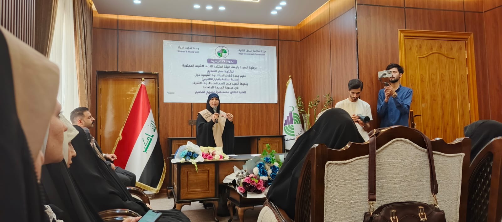 في خطوة رائدة تعكس الاهتمام بحماية المجتمع ونسائه من مخاطر الفضاء الرقمي احتضنت هيئة استثمار النجف الأشرف ندوة تثقيفية هامة حول الجريمة المنظمة والابتزاز الإلكتروني نظمتها وحدة شؤون المرأة في الهيئة.