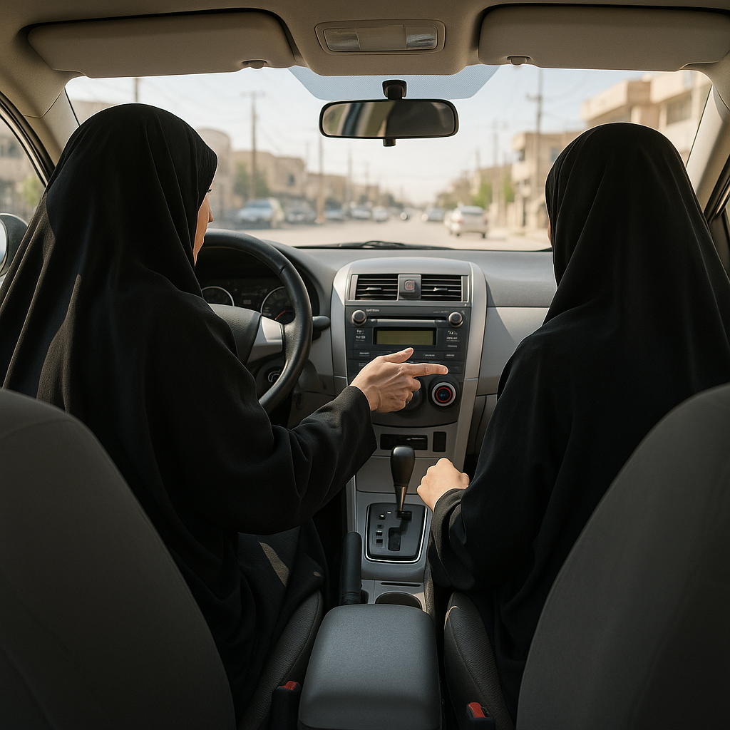 زينب الخضر تقول أنا أم لثلاثة أطفال وربّة بيت. لم أفكر يوماً أن أكون سائقة، كان الخوف والتردد معي الشوارع والازدحام، ونظرات الناس. عندما سمعت عن دورة نهى ترددت، لكنني قررت المحاولة لأن حجوزات الأجرة صارت باهظة وأطفالي يحتاجون للنقل صباحاً. نهى لم تبدُ مجرد مدرّبة؛ كانت مرشدة وصديقة، تصحح أخطائي بصبر وتعلمني كيف أقرأ الشارع. أول مرة ضغطت فيها على دواسة البنزين كان قلبي يرقص، لكن بعد أسابيع قليلة تعلمت المناورات البسيطة والوقوف الآمن وقراءة الإشارات. ما تغيّر ليس مجرد مهارة تقنية، بل شعور بالاستقلالية: لم أعد أتكل على أحد لشراء حاجيات البيت أو لتوصيل الأولاد للمدرسة. هذا التغير أثر أيضاً على نظرة أهلي؛ لم يعد الأمر محصوراً في كون المرأة في البيت فقط، بل أصبحت جزءاً فاعلاً قادراً على تلبية احتياجات الأسرة. أقول لكل امرأة مترددة: تعلّمي، ليس فقط من أجل السيارة، بل من أجل ثقتك بنفسك وراحة يومك